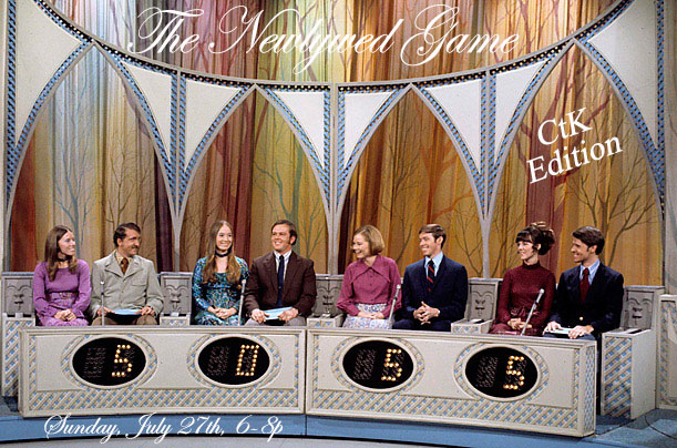 You heard the rumor in passing last Sunday; let the record show it’s happening for sure this Sunday. This Sunday night, July 27th, from 6-8p at the Lafferty’s (6968 Capella Park Ave), we’re going to play the CtK edition of The “Newlywed” Game. Four hapless couples will compete to see which duo can best predict one another’s answers–all with a prize on the line.
