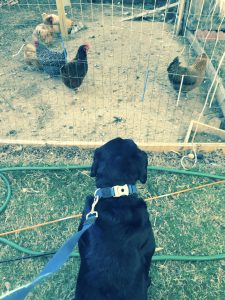Not many days ago, Koda was with her boy in the backyard. (You see where this is going). Boy looks away. A cackle breaks out. Boy turns back to find said Labrador with mouth around the tail-feathers (and appetite for more) of one of our oviparous flock. Boy bellows out the go-t0 command, “LEAVE IT!” The well-trained dog releases her prey, which summarily and noisily retreats to safer ground.