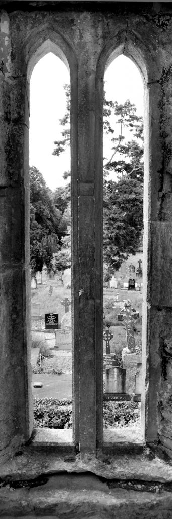 My wife entered one of her photographs in Faith Bible Church’s recent arts festival. It was the same shot she shared with CtK at its inaugural open arts night last summer: a glance through the window of an ancient castle on a farm in southwest Ireland overlooking an adjacent cemetery. The theme of the festival was “Grace Unexpected.” Obtuse as her husband is capable of being, I asked how she thought this work–darkly serene as it is–cohered with that theme. Her write-up accompanying the work on display put me in my proper place: